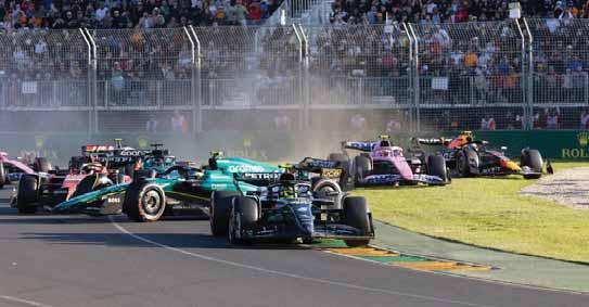 Roussell, Mercedes com problemas de motor (em fogo) de dizer adeus a Albert Park. Metade das voltas feitas (29) e Sergio Perez já se encontra na nona posição, enquanto a Ferrari, Alpine, Hass e McLaren, mantém a sua luta no meio do pelotão. A três voltas apenas do final Kevin Magnussen, Hass bate, perde o pneu traseiro direito e para finalizar tal como começou a corrida... carro de segurança e bandeira vermelha.