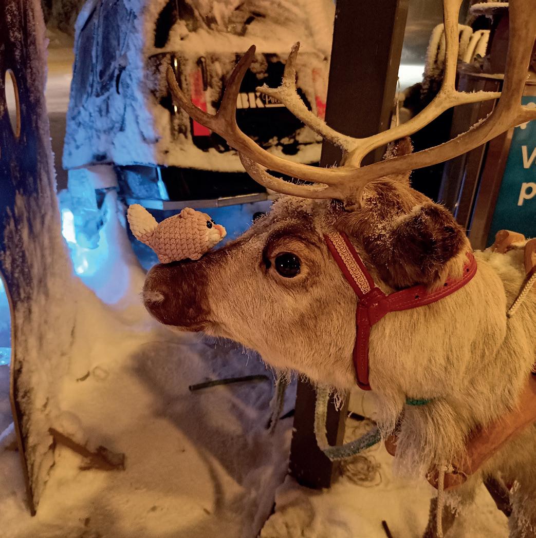 Menomatka oli kylmä (-38 °C) ja pakkanen nipisti kirsua, kun pysähdyspaikalla tervehdittiin parhaat päivänsä nähnyttä poroa.