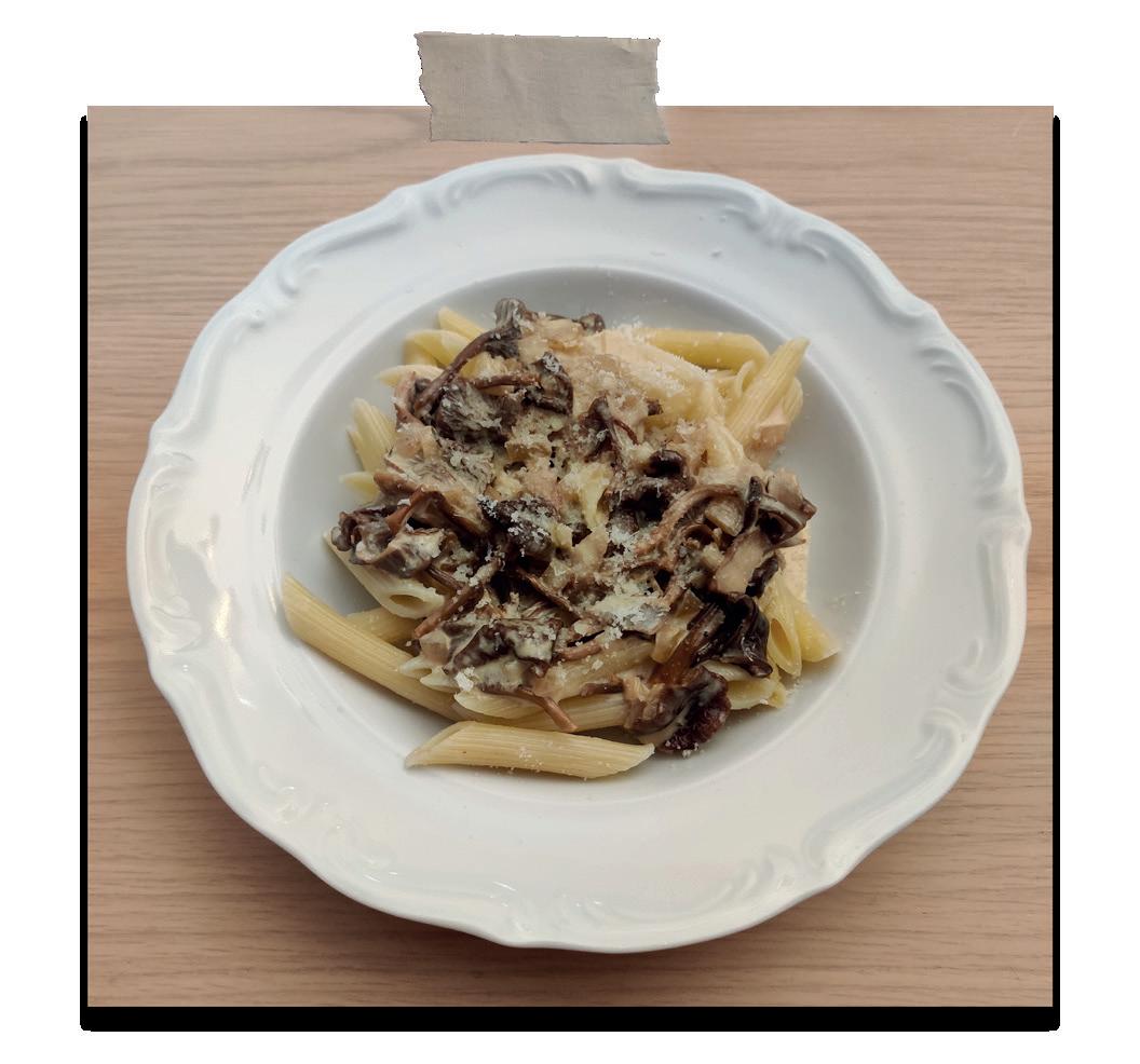 Itse käytin tällä kertaa kuivattuja herkkutatteja sekä suppilovahveroita. Tähän sopii hyvin erilaiset sekoitukset metsäsienistä! Pakastettuina säilötyt sienet käyvät myös hyvin. Olettaisin myös kaupan herkkusienten ajavan asiansa tässä.