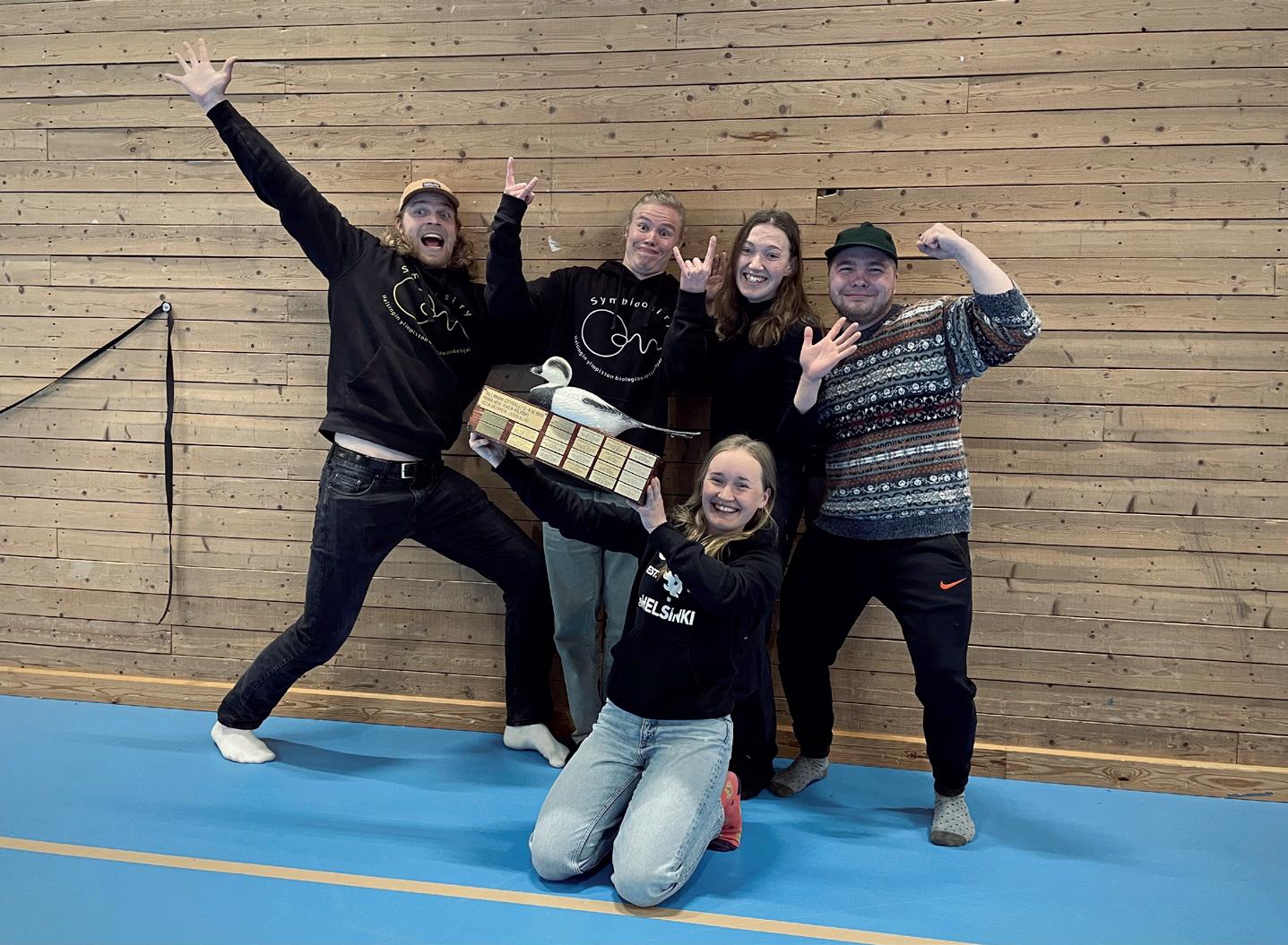 Kihumadot vasemmalta oikealle: Roope Nykänen, Pyry Puustinen, Reetta Schroderus, Riku Kangasniemi sekä rakasta Ahvis-allia pitelevä joukkueen kapteeni Linnea Wartiovaara.