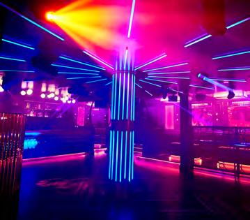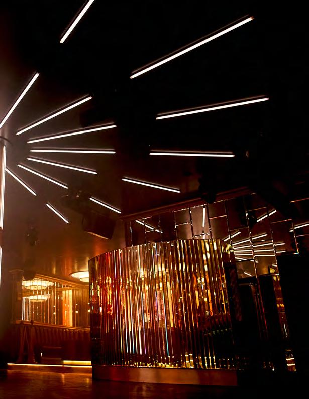 The club area itself is not the biggest space and required impeccably design for two large bars and four private seating booths, all of which look onto the dance floor. A large central booth features mirrored tiles and a square dance floor. The entire space is enhanced by a stunning lighting design that showcases pixel lighting features, LED, and discreet lighting to add depth and dimension.