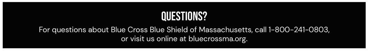 - Administered by Blue Cross Blue Shield of Massachusetts, bluecrossma.com, 800-241-0803