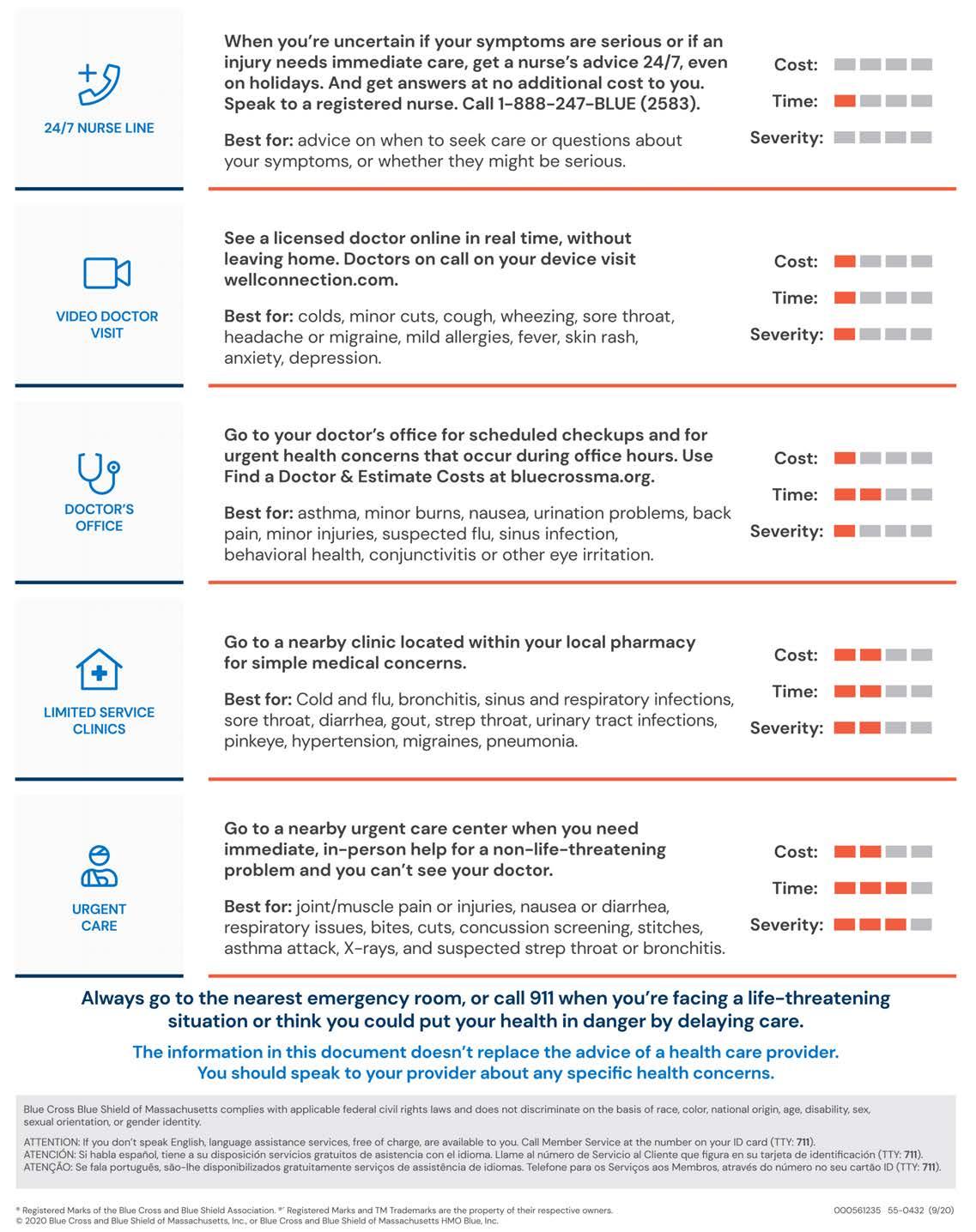 1 Medical services are available 24/7. Behavioral health visits must be made by appointment. If your local doctor in the Blue Cross Blue Shield of Massachusetts network offers covered services using live video visits through a service other than Well Connection, you’re still covered. This service is only available in the United States.