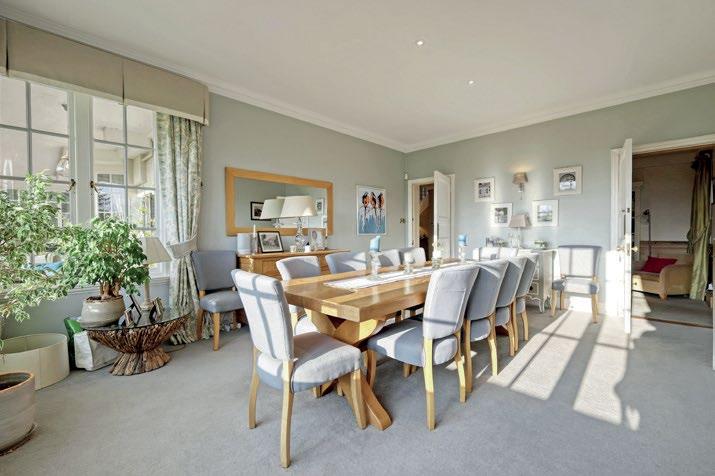 Dining room, two living rooms, sitting room, kitchen, breakfast room, utility room, eight bedrooms, four bathrooms, outbuildings, garage, tennis court, paddock and garden.
