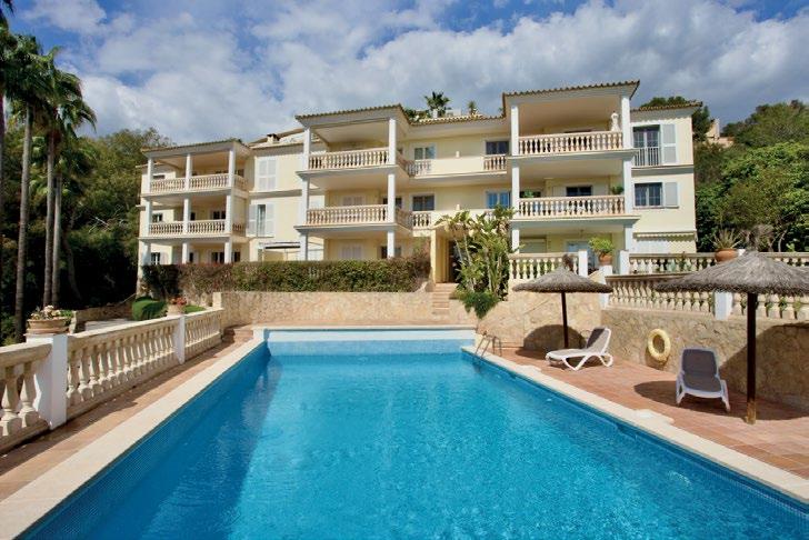 Superb family ground floor apartment in this exclusive community set in a quiet wooded enclave, just a short stroll to the popular village of Portals Nous. This well designed apartment provides a spacious main living/dining room with feature fireplace, with patio doors onto a large, south facing, covered terrace with views over the gardens and pool area. A fully fitted and equipped modern kitchen. 3 bedrooms and 2 bathrooms. Garage parking. Living area: 130m2.
