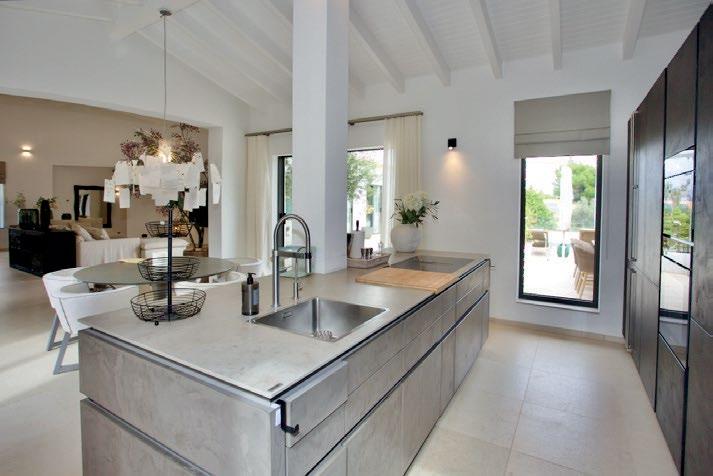 The main living area is stunning both in design and size, this open plan area reflects the main rotunda above with great ceiling height and exposed timber beams. Sitting area with feature fireplace, a spacious dining area and the luxurious kitchen by ‘Leicht’ with ‘Miele’ appliances and ‘island’ preparation area, all opening onto the sunny bathing terraces and private swimming pool. There are 5 bedrooms and 4 bathrooms including the impressive master suite with dressing area and luxurious en suite bathroom. Living: 250m2. Plot: 843m2.