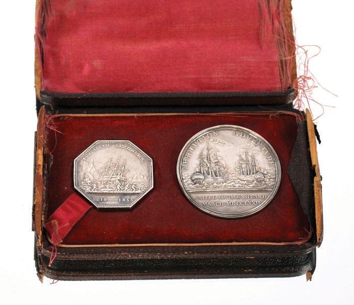 The 1772 Resolution & Adventure medallion, in silver and the Arctic Discoveries medallion 1818 – 1855, cased. Provenance by descent from the family of John Cleveley the Younger (1747-1786) marine artist –SoLd for £5,500.
