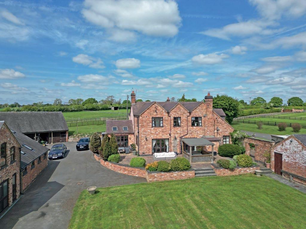 A spacious five-bedroom detached farmhouse sitting on a 3.36 acre plot, with paddocks extending to 2.67 acres or thereabouts, outbuildings, seven stables, tack room, work shop and formal gardens.