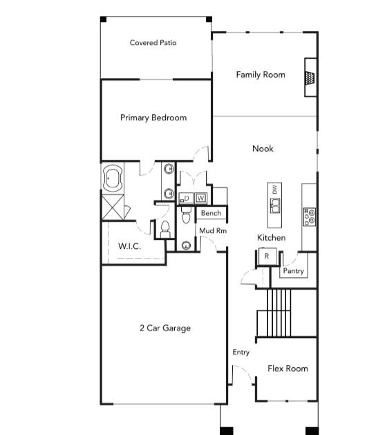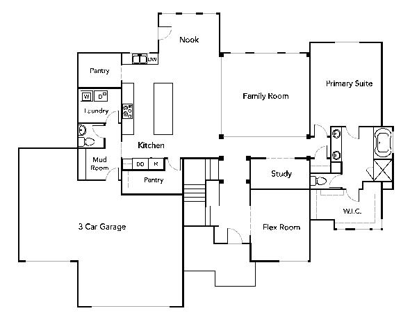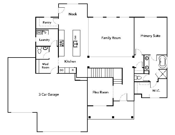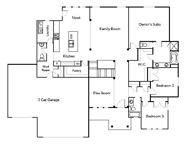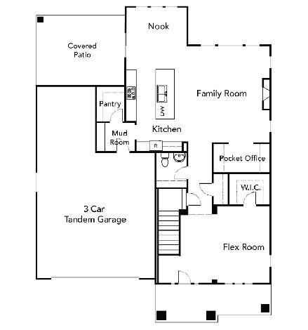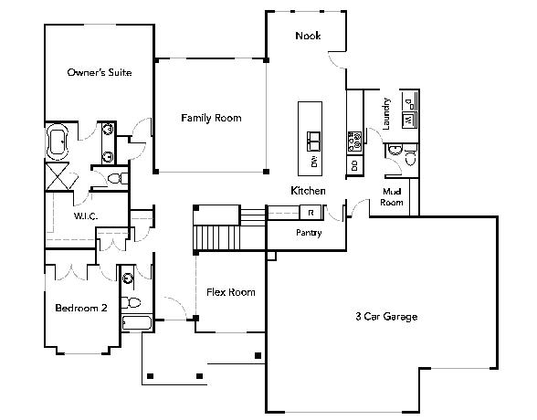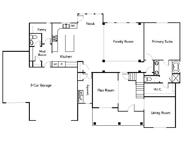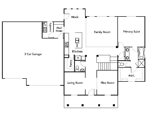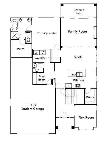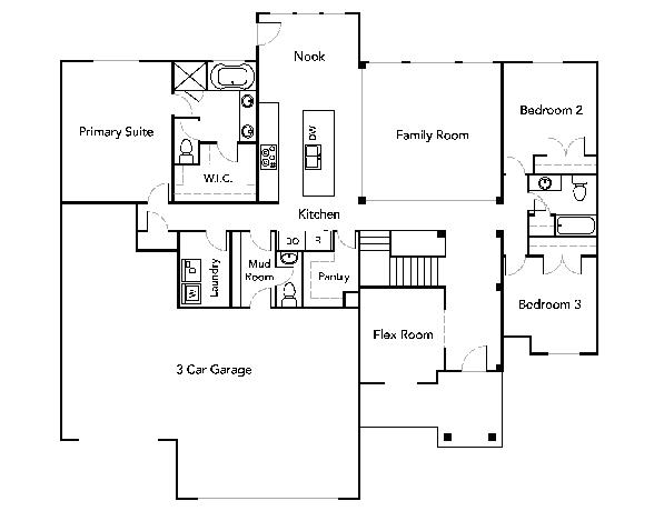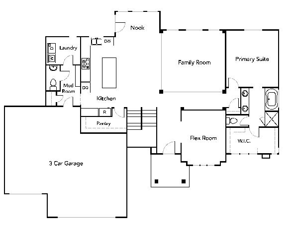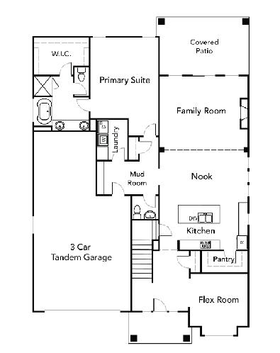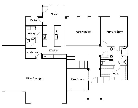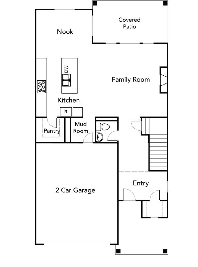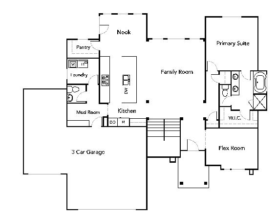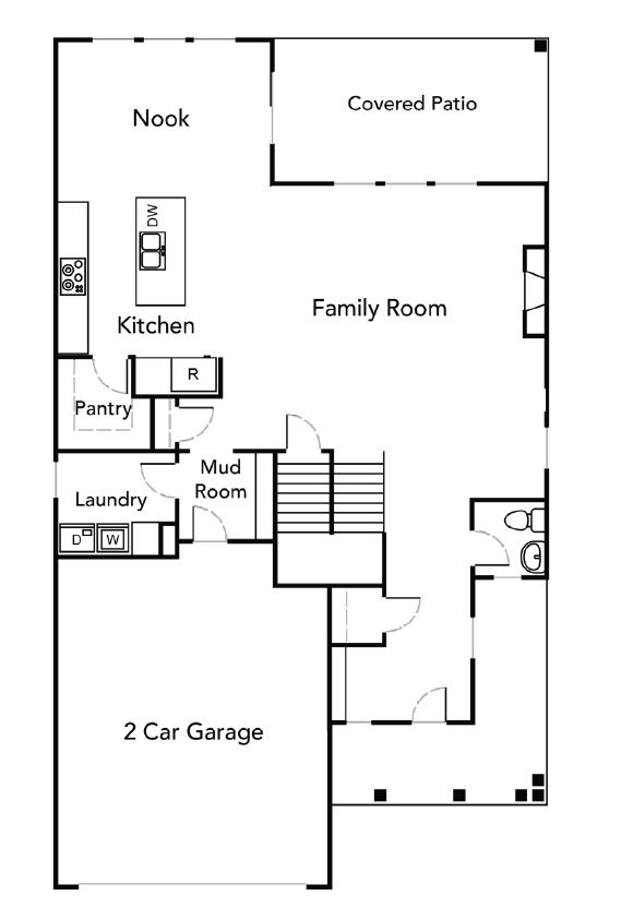 • Group 03 laminate or Group 01 LVP flooring in entry, transition hallway, kitchen, mudroom and dining nook