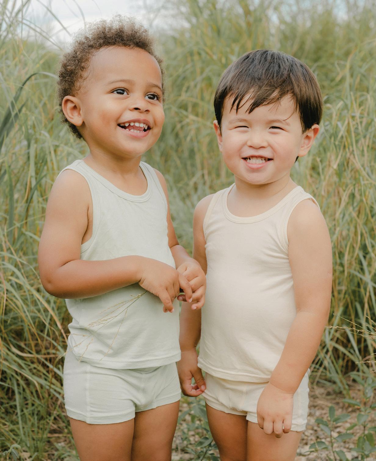 Jae and Chloe Kim (The Kims): We wanted to carry on our family business of manufacturing in a new way. With all of the knowledge and perspective of how the clothes are made, we fell in love with the idea of making children’s clothing that we were proud to put our own kids in, clothes that were high quality and sustainably minded. We have an in-house market research team to search for newly sustainable materials and fabrics and seasonal trends. We try to be creative and curious about new processes and ways of doing things. For example, our TSC Naturals Collection, which launched this spring, uses locally sourced scraps, like onions, indigo and beechwood to make 100% natural dyed garments for everyday wear. Since we did not see other children’s brands doing programs like this, we wanted to >28