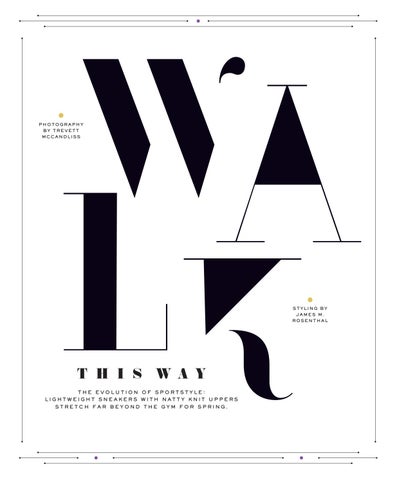 T H I S W A Y THE EVOLUTION OF SPORTSTYLE: L I G H T W E I G H T S N E A K E R S W I T H N AT T Y K N I T U P P E R S STRETCH FAR BEYOND THE GYM FOR SPRING.