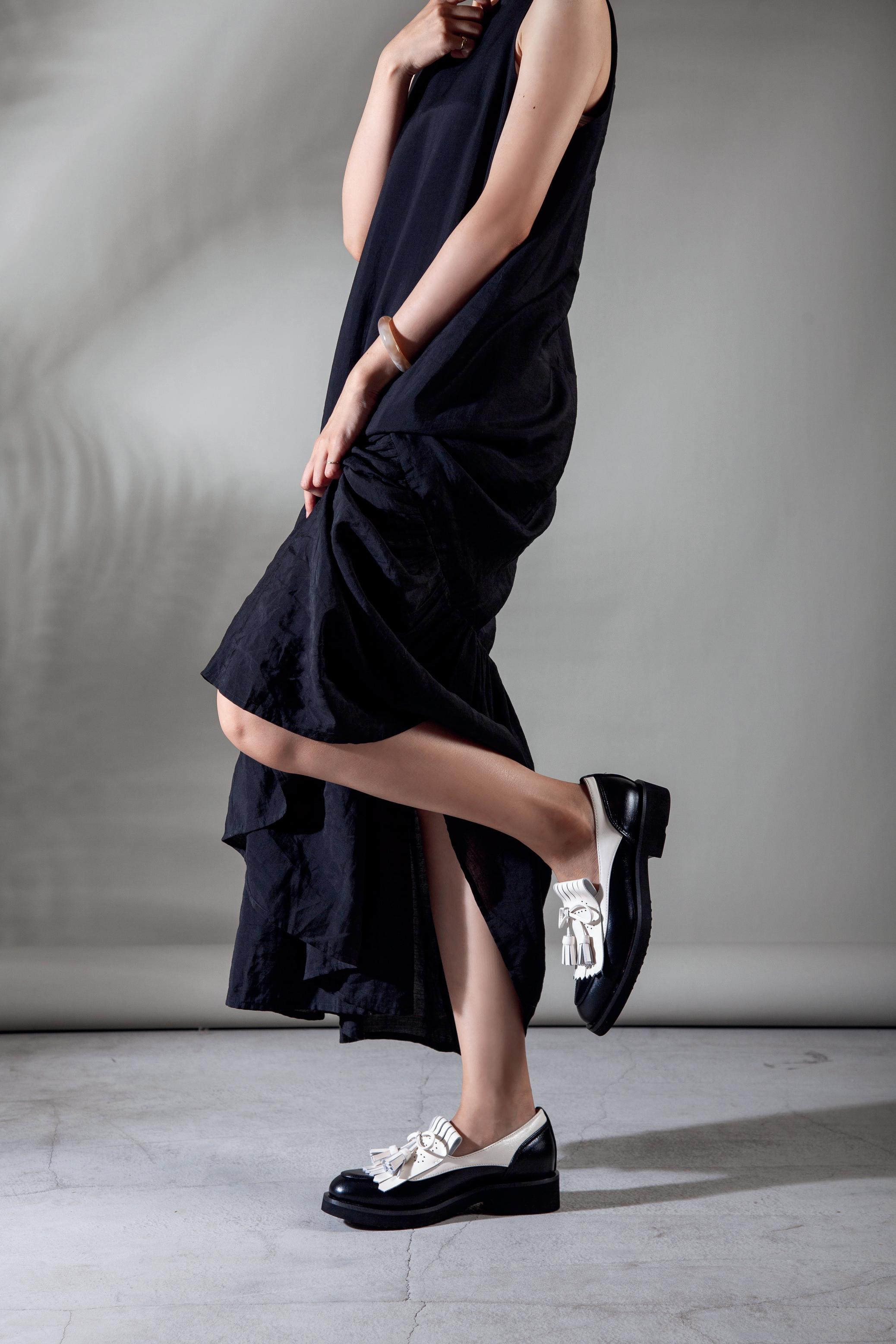 For Spring/Summer ’25, the Julieta Barcelona recipe cooks up new sandal styles with refined aesthetics, Peña says. The neutral color palette of cream, black, and light cognac—along with minimal embellishments such as small leather trim in black or cognac and the signature double J metal logo—are in step with its less is more approach. “When you have beautiful design and luxury materials, those speak for themselves,” he says, adding, “The new line is fresh, sleek, summery, and classic.” Additional highlights includes a “gorgeous” new block heel with an ankle strap, a classic mule, and a wedge—all summer staples. “We’re also introducing a thong sandal in black and tan, ready for errands or the beach,” Peña says. “And a pointed-toe slingback in cream with a black leather strap and trim.”