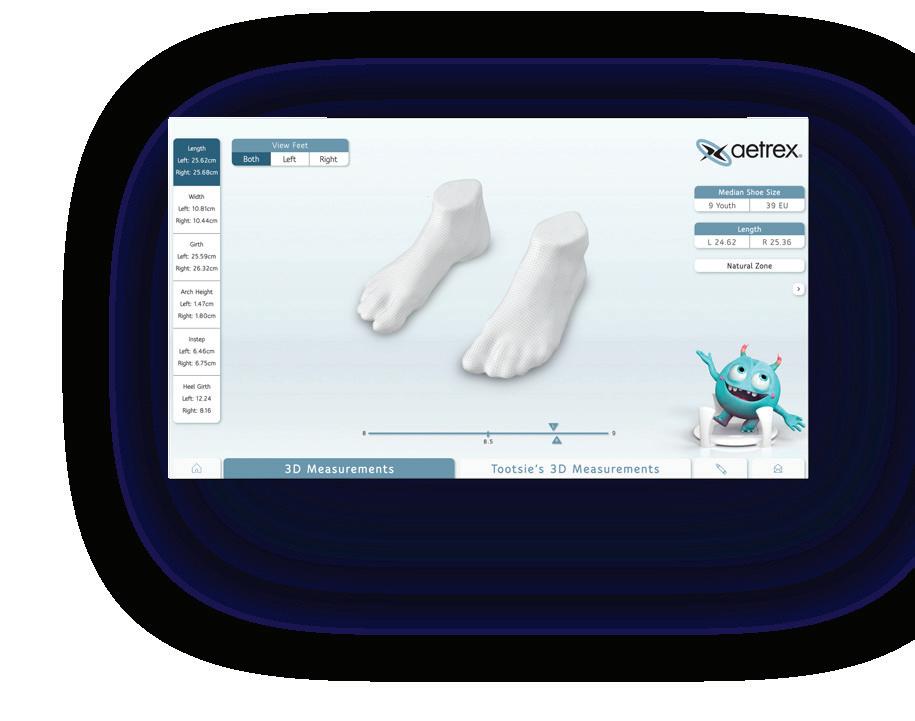 The first 3D foot scanning experience designed just for children. Kids shoe shopping is finally fun!