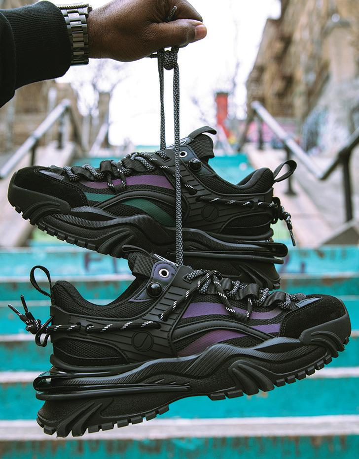 Opposite page: chunky joggers with with mixed material uppers by Javi