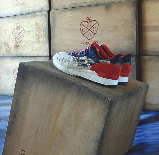 Clockwise from top: Birkenstock Boston Felt, CNCPTS NYC; Nike SB Dunk Low/CNCPTS Red Lobster and packaging; Asics Gel-Lyte III Boston Tea Party on display in CNCPTS New York pop-up store.