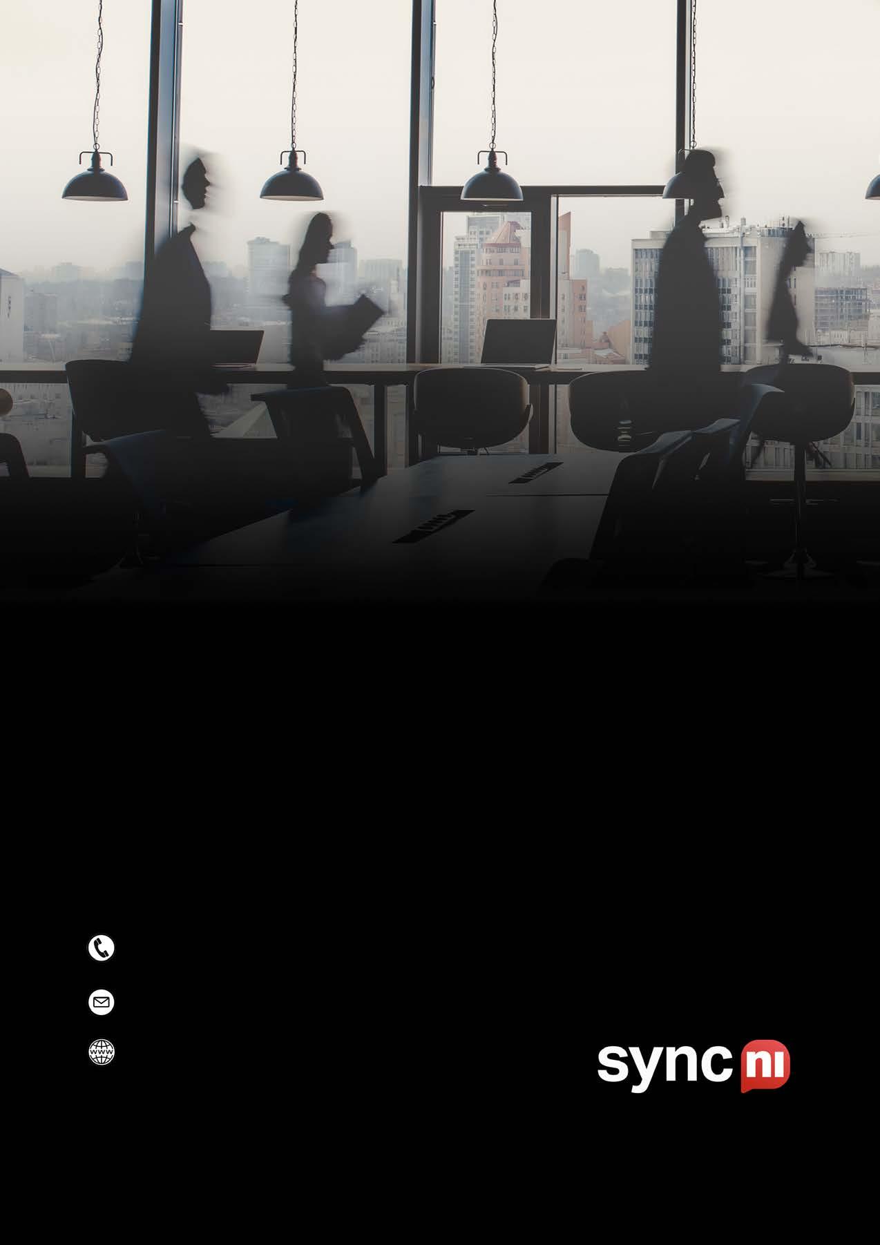 Copyright No part of this publication may be reproduced without the written permission of the copyholder and publisher. Sync NI accepts no responsibility for the accuracy of contributed articles or statements appearing in this magazine and any views or opinions expressed are not necessarily those of Sync NI, unless otherwise indicated. No responsibility for loss or distress associated to any person acting or refraining from acting as a result of the material in this magazine can be accepted by the authors, contributors, editors or publishers. Sync NI does not endorse any goods or services advertised, nor any claims or representations made in any advertisement in this magazine.
