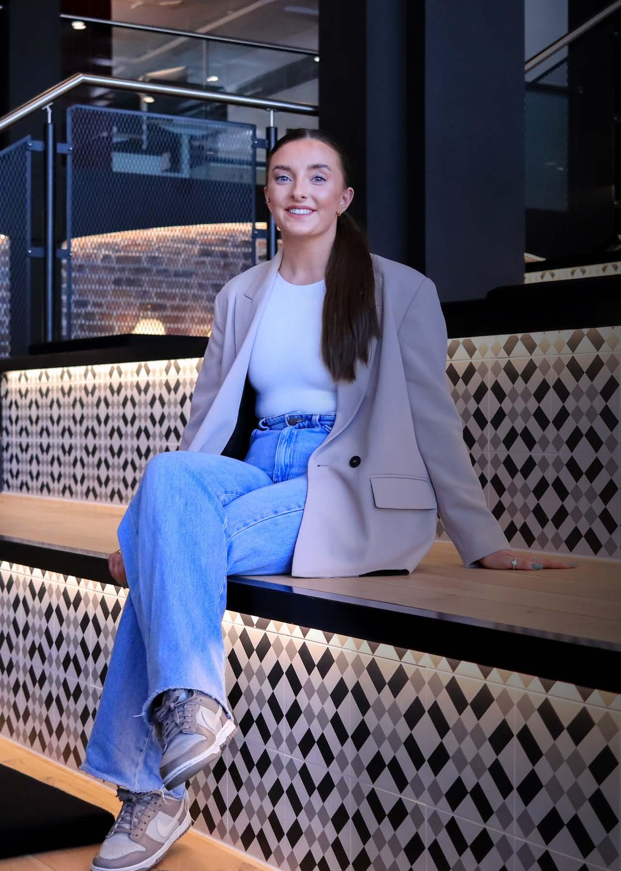 her student days, having studied for a master’s in computer science at Newcastle University. “I already had a passion for technology and going into my undergraduate degree I was excited to learn a variety of new skills and work with others to develop my knowledge”, she explained. “I was heavily involved in the School of Computing at Newcastle University which was another opportunity to partner with others to learn and grow. I found out that back-end programming wasn’t for me but that I loved frontend computing. The idea of talking to customers and incorporating theory to find the best solution for them was something that I really enjoyed and I’m glad it’s become part of my day-today life at Fujitsu.”