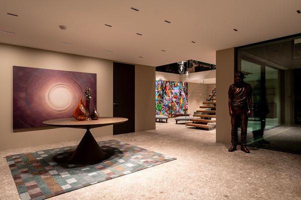 Villa Brattlie, a stunning minimalist private villa by the sea, blends art, architecture, and nature harmoniously. The design incorporates various iGuzzini lighting solutions: Laser Blade recessed luminaires provide general lighting, Laser pendant luminaires and Palco floodlights accentuate specific areas, and Palco Framer offers vertical lighting for artworks.