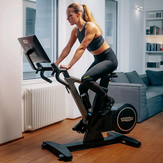 The Technogym Ride is a smart indoor cycling bike that integrates training apps, on-demand coaches, and outdoor routes directly on its display, requiring no additional setup It offers intuitive, fully configurable gear shifts and a realistic road bike feel, with fast reaction times and adjustable saddle, handlebar, and crank length. The bike's precise power meter tracks cadence, symmetry, and circularity, helping users improve their pedaling stroke over time.
