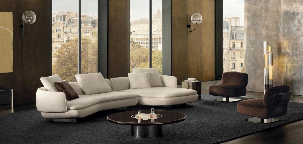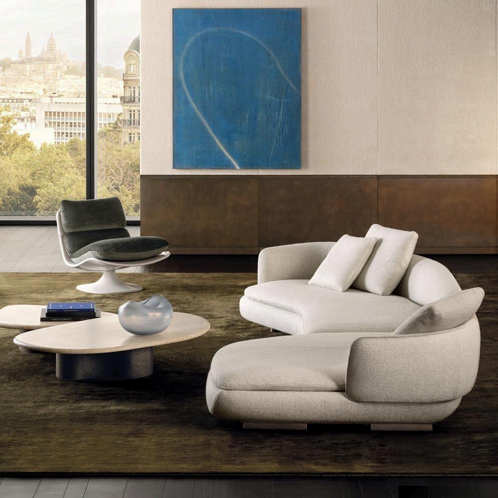 The Vivienne seating system is inspired by the semicircular curved backrest of the Vivienne armchair, featuring a contemporary aesthetic designed by ItalianDanish duo GamFratesi The embrace of the backrest that wraps around the seat also acts as an armrest, giving it a particularly decorative flair. The project features a finely contoured upholstered base, supported by recessed aluminium bars, which hosts and partially conceals the thickness of the cushions. As a result, the seat appears thinner a detail that gives the upholstery a more delicate look, making it feel light while remaining incredibly comfortable. The designers describe this seating system as “a piece that plays with the harmony of shapes. Its soft and generous curves, typical of the Vivienne Large armchair, evolve into a sofa system with new proportions. A perfect balance between sinuosity and geometric rigour, between the decorative and the essential, making it suitable for any modern space while maintaining an iconic and organic character”