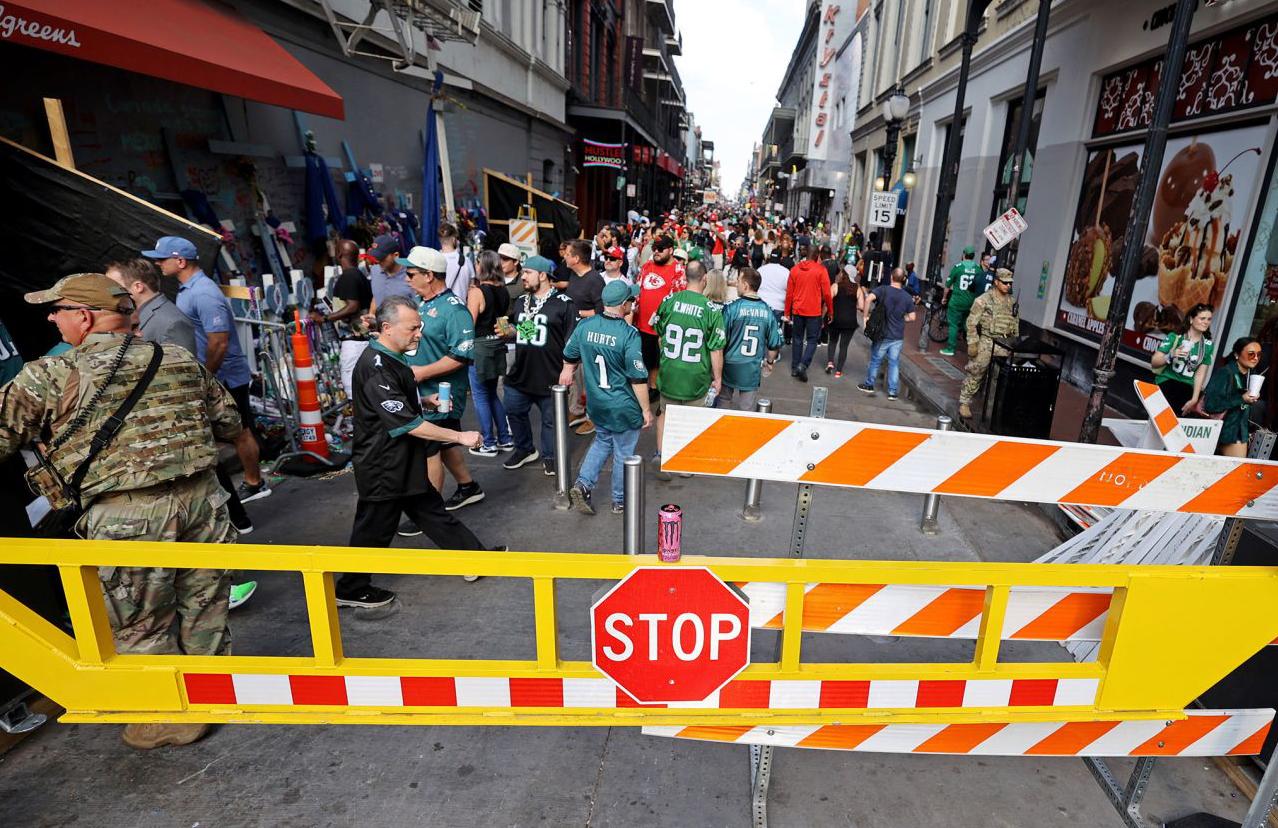 LEFT: Amid Super Bowl LIX crowds, security teams and barriers kept order, with TAK ensuring real-time coordinationforasafeNewOrleans experience