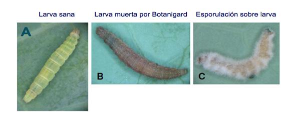 Cuando las esporas de Botanigard entran en contacto con los insectos, éstas reconocen químicamen te su cutícula y se adhieren a ella. Las esporas generan el tubo germinativo que perfora la cutícula de la plaga creciendo hacia su interior. Una vez en el interior de la plaga, Botanigard se multiplica y libera toxinas, produciendo la inmovilidad por parálisis muscular del insecto, el cual deja de alimentarse.