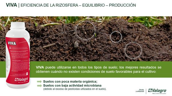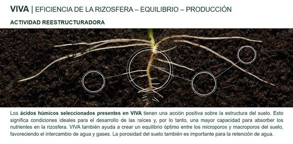 VIVA® es la perfecta combinación de principios activos que revitaliza y mejora la estructura de la rizosfera, favoreciendo el crecimiento radicular, el equilibrio vegetativo-productivo, estimulando la formación óptima de la fruta, reduciendo las caídas de ésta y disminuyendo el cansancio del suelo.