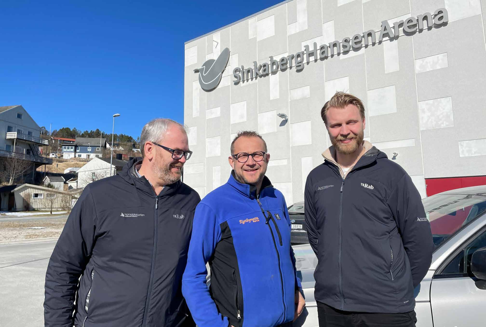Snart klart for Kystbymessa 2024 sier Lars Fredrik Mørch (Namdalskysten Næringsforening), Kim Gøran Arnø (Folla Event AS) og Jonas Williksen (Namdalskysten Næringsforening).