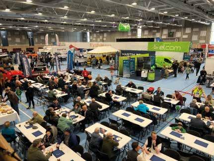 Bilfirmaet Nordvik AS tar turen også i år til Kystbymessa. Å prate kjenning i messekafeteriaen er populært.