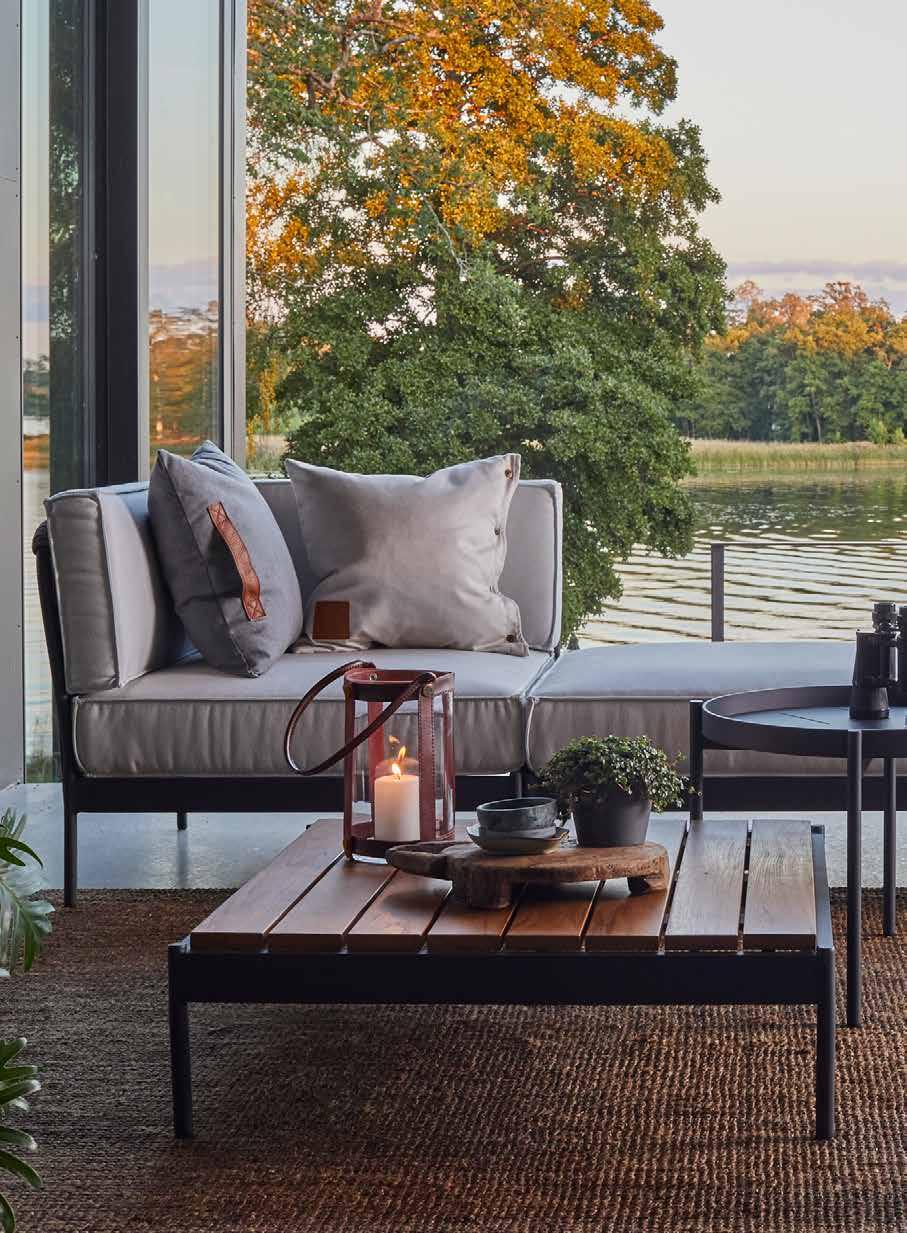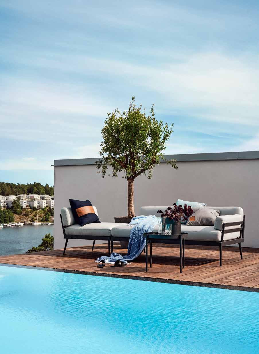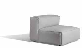 A range of modular lounge furniture, made of powder coated aluminum frame, with cushions in Sunbrella fabric covered outdoor high quality foam filling. Or, put another way, a range that looks good and is also almost maintenance-free.