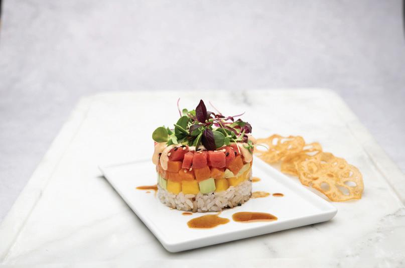 Custom culinary fish batter, island premium Rockfish fillet topped with a Jamaican Escovitch sauce served on curry mayo and topped with microgreens from Vertical Choice.