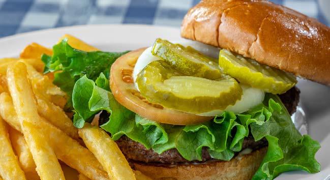 Flame broiled ground Angus beef topped with your favorite condiments ¼ lb 6.99 ⢠½ lb 7.99 ⢠With cheese add .50