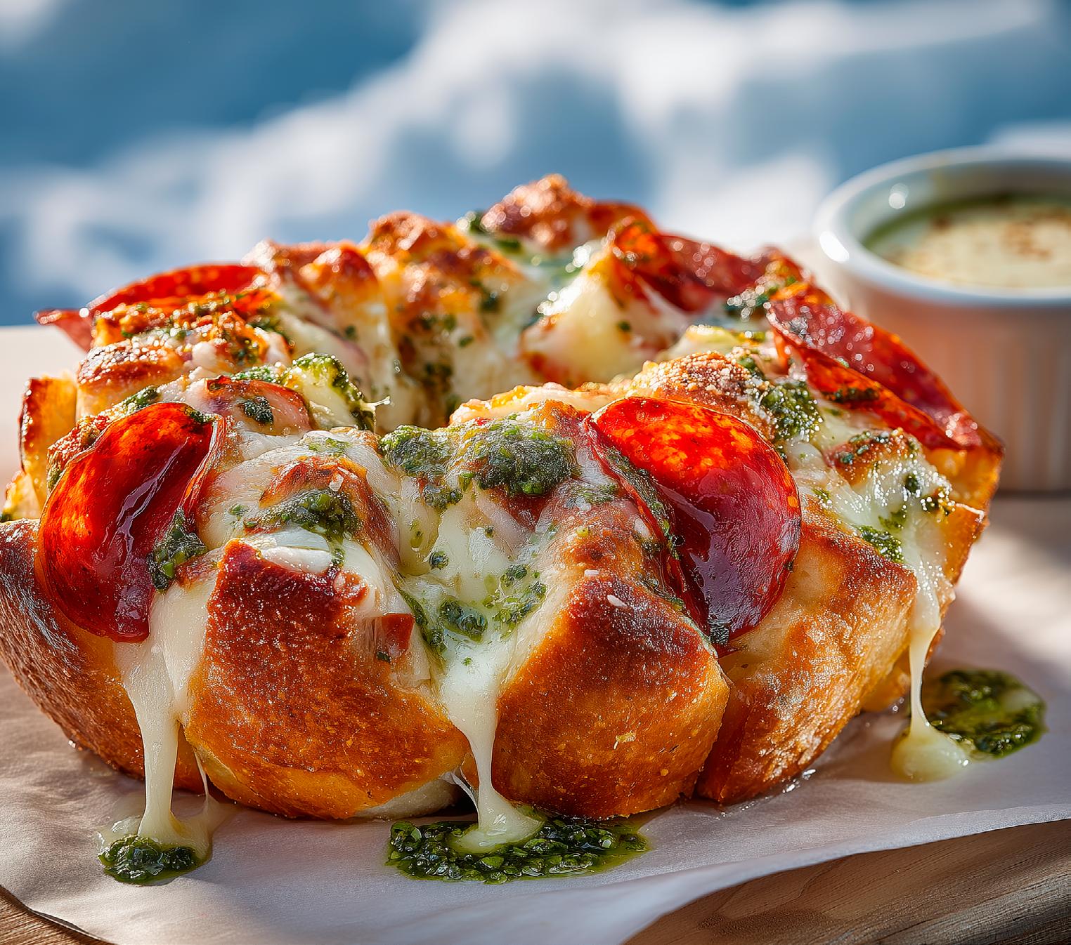 Garlic Knot Pepperoni Pull Apart Bread