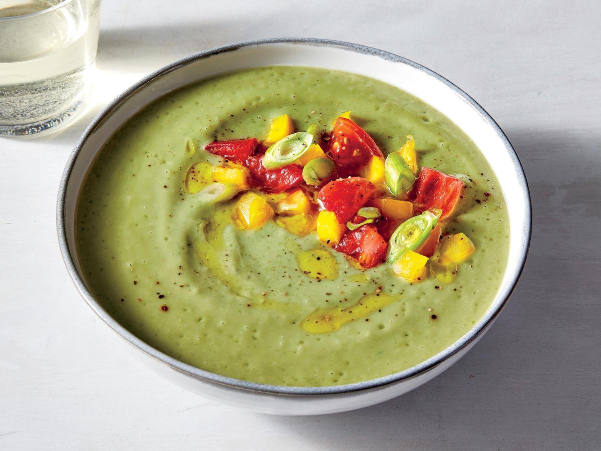 Puree all ingredients in a blender. If the ingredients are chilled prior to blending them, just eat and enjoy. Otherwise, I suggest chilling it for about 30 minutes.