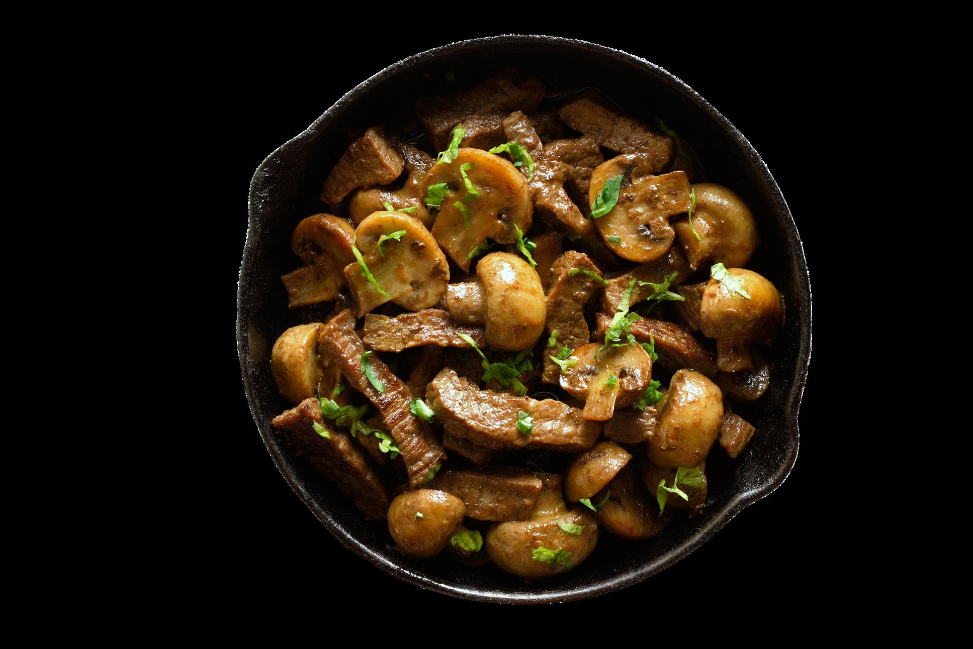 Sliced Chuck Flat pieces tossed with our Sysco Imperial Wild Mushroom Medley, veal jus and torn basil is simplistic, cost effective, and delicious. Try adding your cast iron Chuck Flat over mashed potato, rice, gnocchi or pasta. This dish is at home throughout all of our d b f ll b l k