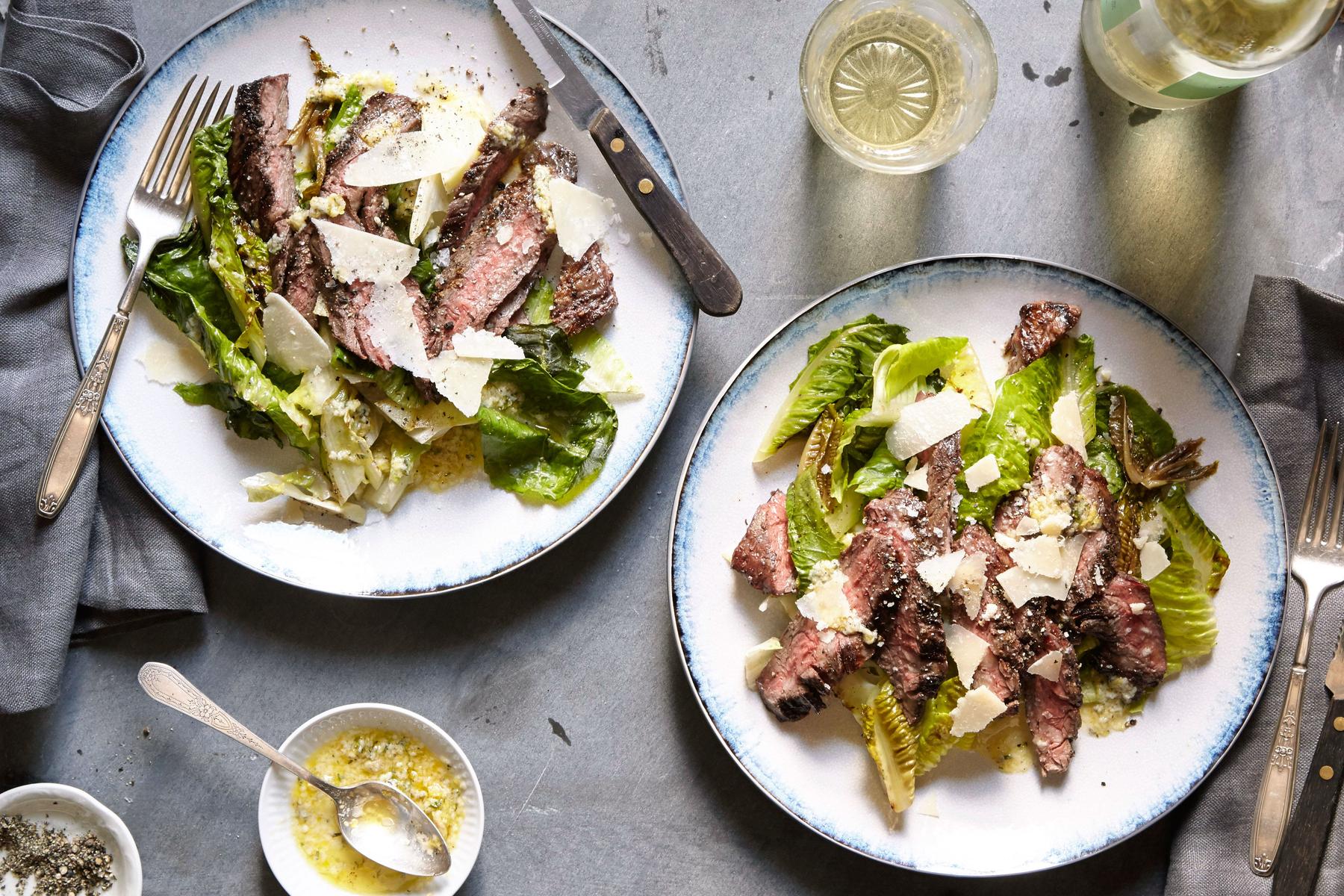 Charred Romaine + Steak Salad with Parmesan + Balsamic with Parmesan + Balsamic