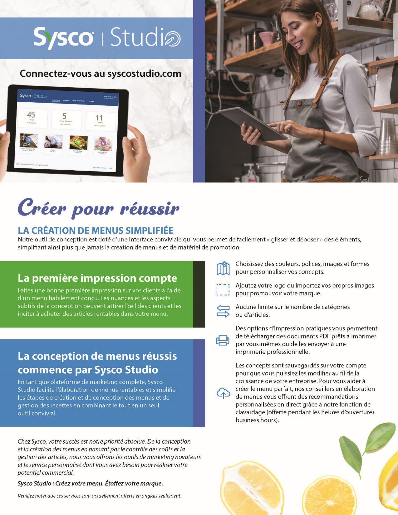 de l'Ontario, veuillez parler à votre conseiller en vente Sysco de la disponibilité