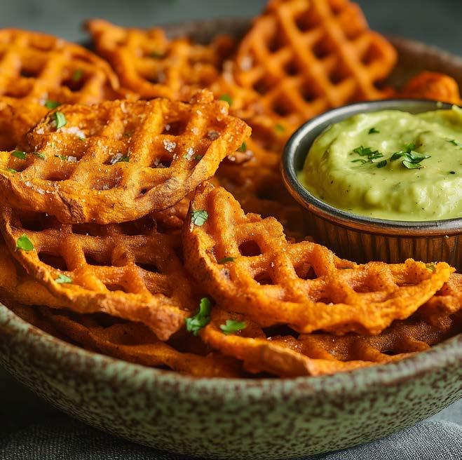 Sweet Potato Waffle Fries with Poblano Avocado Ranch Dip