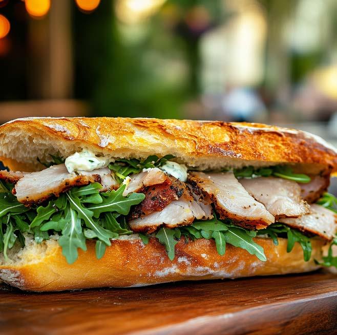Porchetta Sandwich with Provolone, Muffuletta, Arugula & Pesto Aioli p.39