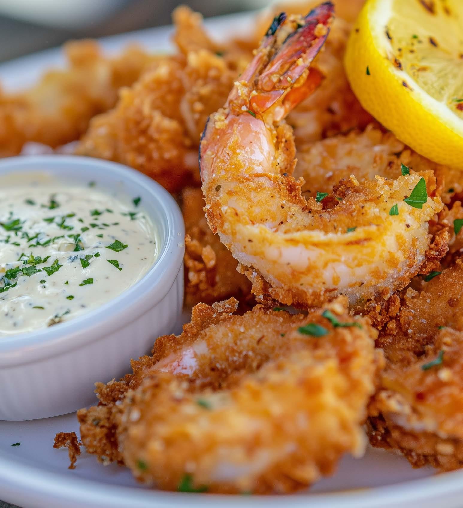 A summer shareable that will be quick and easy for the kitchen to prepare is breaded shrimp with a trendy dip. Dill pickle is all the rage, and its flavour profiles pair amazingly with fried seafood. For a garnish that adds a nice zest to the dish, throw a half or quarter lemon on the grill.