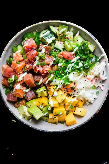 wwithSalmon-Tuna-Crab-Mango-Avocado-Wakame-Cucumber-CucumberWasabiDressing ithSalmon-Tuna-Crab-Mango-Avocado-Wakame-Cucumber-CucumberWasabiDressing