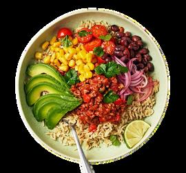 wwithVeganCrumble-Rice-Avocado-Onion-BlackBean-Corn-Lime+PoblanoDressing ithVeganCrumble-Rice-Avocado-Onion-BlackBean-Corn-Lime+PoblanoDressing