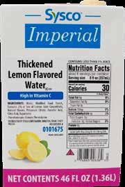 Sysco Imperial Thickened Juices and Beverages are specially formulated to provide hydration and vitamin C to your residents with dysphagia. The refreshing flavors and smooth consistency encourages consumption and each 4 fl oz serving provides 100% DV of vitamin C.