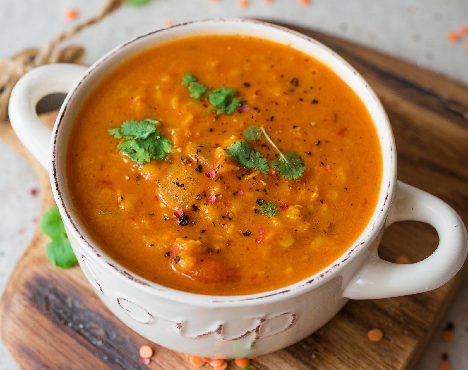5. Ajouter les lentilles, le poivre noir moulu et le lait de coco.