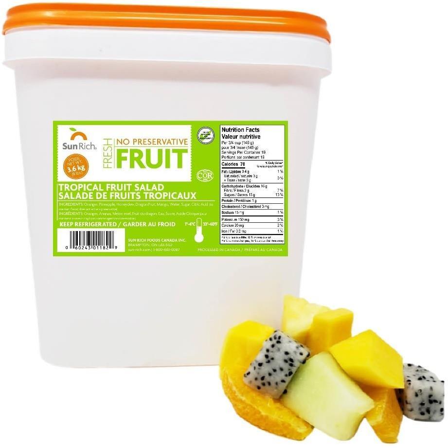 DECEMBER 2022 11 SYNERGY TECH SUITE Tropical Fruit Salad with Dragon Fruit (no preservatives) SUPC Product Name UPC SCC Shelf Life 7218141 NO PRES Tropical Fruit Salad with Dragon fruit 8# 060243017937 10060243017934 16 days 7218119 NO PRES Tropical Fruit Salad with Dragon fruit 14# 060243017944 10060243017941 16 days For more information, please contact your Fresh Pro sales representative. www.sun-rich.com An Exciting New Fruit Salad! Premium ingredients like dragon fruit and mango, with pineapple, oranges, cantaloupe and honeydew, make for a visually appealing salad that tastes as good as it looks! SUN RICH