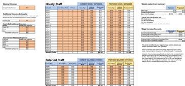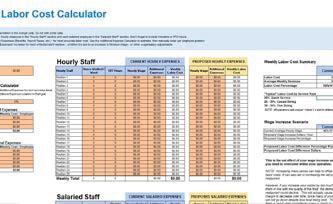 Labour Cost Calculator - This calculator will tabulate the cost of current labour. It will allow tracking of labour costs to keep them in line with industry standards (see cheat sheet). You will also be able to predict labour cost increases for hourly and salaried employees to better understand the impact on your business as wages increase