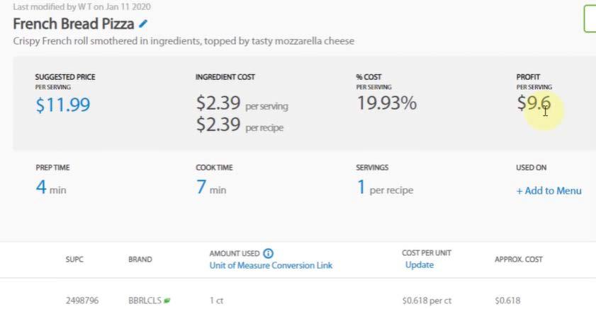 Il peut également être utilisé pour calculer la moyenne du coût de la main-d’œuvre pour la préparation afin de mieux comprendre les coûts associés aux recettes faites sur place, au-delà des coûts alimentaires.