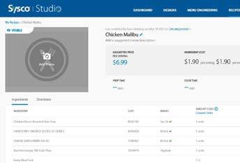 Calculateur des profits du menu (Sysco Studio) – le calculateur de profit de Sysco Studio permet de saisir les modifications apportées aux prix des menus afin que les exploitants puissent tester les changements et comprendre la manière dont ils affecteront les marges sur chaque article au menu. Des ajustements de volume peuvent également être apportés pour créer des scénarios hypothétiques qui aident les exploitants à comprendre comment les diminutions ou les augmentations des ventes auront une incidence sur les profits globaux.