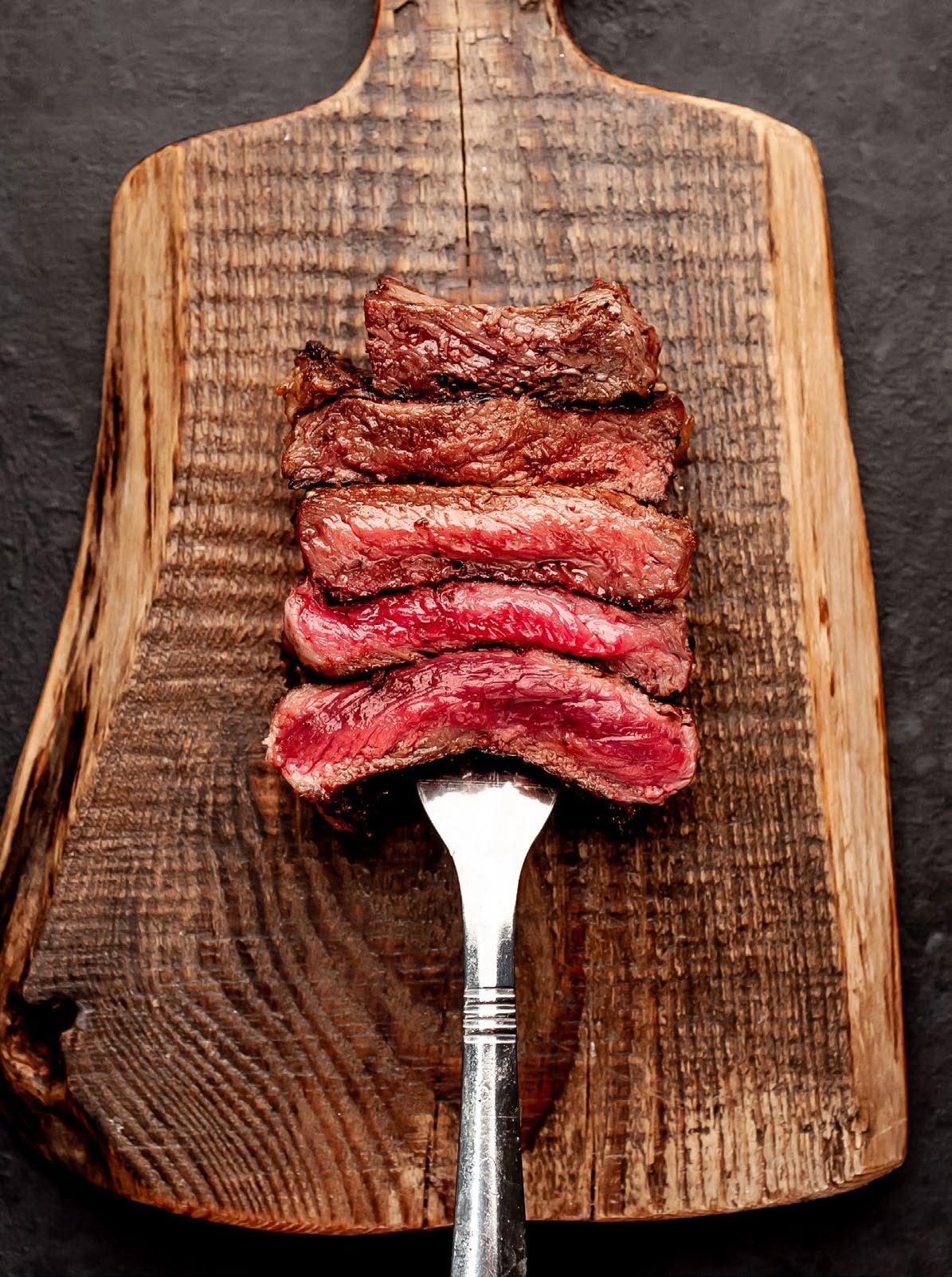It is best cooked on a pre-heated griddle or pan. Sear the steak to create a caramelised crust on both sides while adding butter, garlic, and robust herbs.