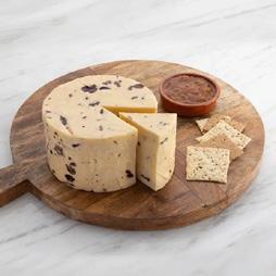Pair with a range of accompaniments that complement rather than compete: fresh fruit for brightness, something sweet like chutney or honey and a bit of crunch from crackers or toasted bread.